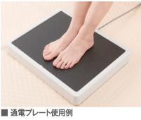 通電プレートは全身のツボが集まっているといわれる足裏全体を微振動で刺激し、全身的な効果が期待されます。