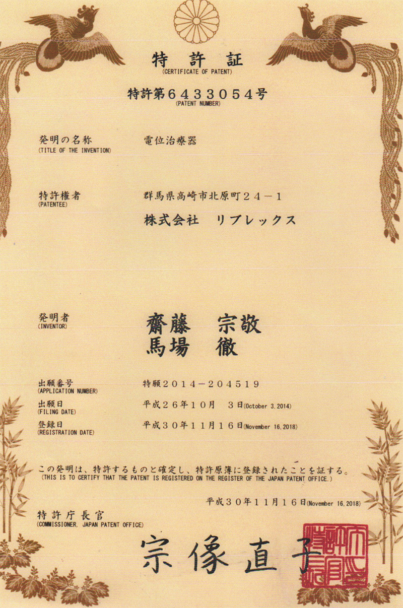 電位治療機器の設計製造にて認証取得